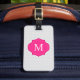 Grey Lattice Pattern Hot Pink Monogram Luggage Tag