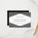 This modern wedding details card features a grey layered geometric design on the front and a black back side.