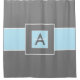 Grey and light blue monogram personalised shower curtain