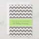 Fifth wedding anniversary party invitation card in fun and modern dark charcoal grey, bright lime green and white chevron retro zigzags stripes pattern, elegant and contemporary. Customisable with your party details.