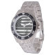 Has heft and feel of expensive stainless steel quartz watches. Good band with safety catch. I removed links, which is easy because engraved arrows show direction to push the linking pins. As always by this seller, the image (a railroad logo) is a perfect reproduction of my emailed image, and is precisely spaced and aligned.