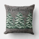 Grey Linen Snowy Evergreen Trees Name Throw Pillow
