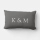 Simple, modern, elegant, cute Throw Pillow or Cushion with the word Love typography and heart on one side with a light grey background, on the other side is an optional custom monogram or name with the bride and groom's or couples personalised monogram initials or names in white text on a dark grey background. Perfect for wedding favours, engagement favours, couples, Valentine's Day, anniversary gift or any occasion! Click the "Customise It" button to add your own custom text and change fonts and colours for a personalised design. Or delete text for a plain background.