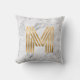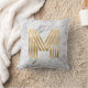 Grey Marble Retro Geometric Gold Foil Monogram M Cushion