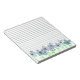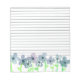 A pretty lined notepad featuring a row of watercolor flowers painted in shades of grey, mauve and purple with spring green stems and leaves. Cheerful floral notepad for lists, reminders or a cute gift!