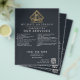 A simple and minimalist business flyer features your name, title, services, and a QR Code. These Luxury aesthetic business flyers are attention-grabbing, with a unique modern design, while presenting a refined high-end feel. Great for private or commercial contractors of various fields. The face of the cards features white text colours, as well as a gold faux foil.