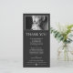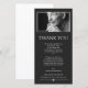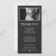Minimalist dark grey thank you card for a memorial service featuring white text, tasteful fonts, and a photo of your loved one.
