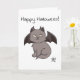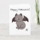 Grey Mischievous Vampire Cat Happy Halloween Card