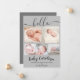 A modern, simple and elegant grey baby girl birth announcement with 5 photo grid collage, and an elegant typography calligraphy, with hello baby name. Introducing baby!