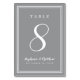 A template for any number this simple, minimalist and elegant Wedding Table Number design features a contemporary design with a double frame border in crisp white on an ultimate grey background. Chic design provides timeless yet modern sophistication. Personalise wedding table design with your name, wedding date and table number in trendy white lettering and script. The back of the card is a duplicate of the front. Easily customise and order one for every table with the individual table numbers.