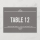 This classic and whimsical table number postcard features modern typography, elegant boarders and script font and floral illustration. This grey and white postcard is part of a wedding invitation suite. Matching products are available below. For enquiries please click on the contact button above.