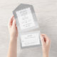 Grey Modern Wedding All in One Invitation. This beautiful and elegant grey all-in-one wedding invitation features a watercolor-painted ombre background with a white border and includes an RSVP response card. Find matching items in the Grey Watercolor Ombre Wedding Collection.