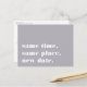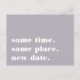 Need to postpone or reschedule your wedding? Let guests know with these modern and lighthearted postcards in chic grey with crisp white lettering. Funny and clever typography-based design features "same time, same place, new date" on front, with your new wedding date and details on the back.