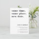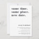Need to postpone or reschedule your wedding? Let guests know with these modern and lighthearted cards in white with soft grey lettering. Funny and clever typography-based design features "same time, same place, new date" at the top with your new wedding date and details beneath.