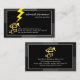 A black cover with a grey monochromatic frame features a yellow lightning bolt that powers up a gold "letter-e home circuit" logo you can use. Beside the logo stands the contact details with your prestigious name and job title at the upper right corner.