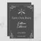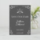Personalise a unique wedding announcement with a Grey Monogram and Arrows Save the Date. Announcement design features crossed arrows and monogram placement adorned with elegant corner flourishes. Additional save the date announcement available for this design in a variety of colours.