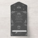 Invite guests to your upcoming wedding with a Grey Monogram and Arrows All in One Wedding Invite. Invite design features crossed arrows and monogram placement adorned with elegant corner flourishes. Personalise with the groom and bride's names along with the wedding date and location. Additional wedding stationery available with this design as well.