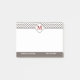 A classic chevron pattern in charcoal grey and white decorates the top of these post it notes, with your monogram in bright red on a grey lined white banner. The bottom of the note has a matching grey border with your customised text in white. Attractive, and very professional looking for business or home.