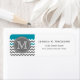 Grey Monogrammed Teal Blue Chevron Return Address Label
