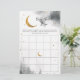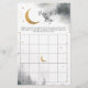Over the moon theme baby shower activity card. Have some fun at your baby shower with this bingo game card. Watercolor splash in grey with faux gold moon and stars. The bingo game asks the guests to guess what gifts the mummy-to-be will be receiving. Original illustration and design by Namibear Art Studio.©Namibear
