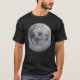 An atmospheric design depicting a dark grey moon against a dramatic, black background.