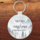A mysterious grey forest accented with a romantic white fog around the pine trees and mountains in the background make a great wilderness wedding keychain. This elegant reception favour features all caps with a beautiful signature flourish on the capital letters.