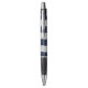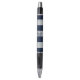 Stylish light grey & navy blue striped personalised pens with laurel wreath monogram to add your own initial.