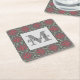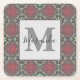 Grey Nordic Snowflake Winter Pattern Monogram Square Paper Coaster