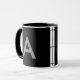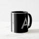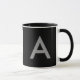 Grey on black, initials as letter. mug