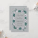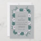 This design features a sophisticated palette of deep teal and pale lavender set against a muted grey background. Lush, ruffled carnations in a dark jewel tone are paired with delicate anemones and soft greenery. Perfect for a winter event, the artwork evokes a sense of moody elegance and timeless romance. The dense botanical arrangement creates a polished and artistic aesthetic.