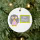 An ornament for teachers featuring an illustration of a grey owl standing at chalkboard. Owl has a pink chevron belly. Personalise with your name on chalkboard.