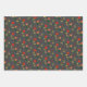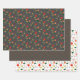 Grey pattern red wildflowers wrapping paper