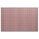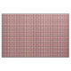 This fabric has a geometric design of ovals with different patterns in grey in each half all on a field of red.