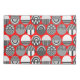 This pillowcase has a geometric design of ovals with different patterns in grey in each half all on a field of red.