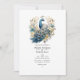 Grey, Peacock Blue and Gold Floral Winter Wedding Invitation