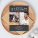 Celebrate his graduation with this charcoal grey two-photo collage modern graduation announcement card. Customise with two of his senior photos, name and the name of his school. Additional information can be added to the bottom of the announcement such as the graduate's college plans or party invitation details. This high school graduation announcement card reverses to a coordinating grey on the back.