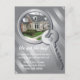 This new home announcement features a key ring with a key attached representing the key to your new home. The key is silver and the keyring holds a space to insert a photo of your new home. The postcard is silver with stripes. Very modern and unique with clean lines. If you're moving into a new place this is great to send to your friends and family.