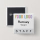 Easily personalise our square pin back staff badge with your logo, staff name, or other custom text. It attaches with a safety pin back. Designed in light grey and other colours (all colours are customisable). Our square buttons are 2 inch x 2 inch. Made in USA. No minimum order quantity and no setup fee.