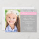 An elegant damask and cross first communion invitation. Shown in grey and pink. Chic and classy -- Easily personalise for your event.