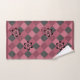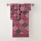 Grey pink geometric chequered pattern with flowers bath towel set