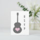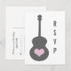 Hip and stylish Guitar Heart Wedding Response Postcard featuring a charcoal grey acoustic guitar and a cute light pink heart. This modern and unique wedding RSVP postcard is perfect for a rocker chic music-themed wedding! Easy to customise, simply add your wedding details in the text fields provided. Click on the "Customise It" button to find additional personalisation options.