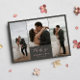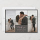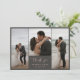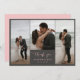 Photo collage wedding thank you card in dark grey with pink fonts. Flat wedding thank you card with photos printed on one side and lines on the other so you can write a thank you message by hand. Wedding thank you card printed with photos and your names with Thank you written in a pink calligraphy script. Timeless and tasteful wedding thank you card with a photo collage with three of your wedding photos.