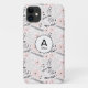 Grey Pink Whimsical Flowers Monogram Case-Mate iPhone Case