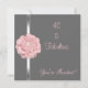 Invitation Birthday Event Celebration Party Mid Grey with Silver Trim and Pink and White Pearl Flower, Fabulous at 40.