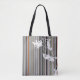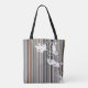 Grey Pinstripe and Floral Design Tote Bag