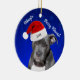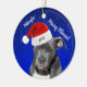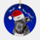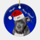 Grey Pit Bull with Santa Hat Merry Pitmas Ceramic Ornament