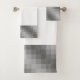 Grey Pixel Graphic on White Bathroom Towels