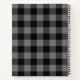Grey and black buffalo plaid check pattern personalised sketchbook notebook for drawing and art, titled "Sketches by... and your name" printed on the cover in modern large oversized bold letters. Grey background colour can be changed to anything you like using the advanced editor.