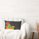 Grey Plaid with Fall Maple Leaves Lumbar Cushion