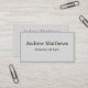 Elegant, simple, professional, customisable business card for business and lawyers with plain font style text on a solid grey background. The sample text is shown for an attorney at law but it is perfect also for photographer, fashion designers, decorators and other creative occupations.